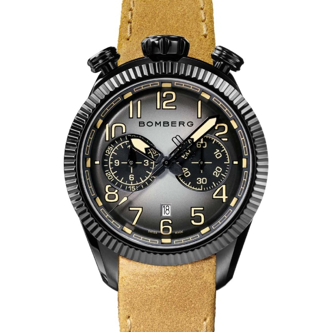 Als ein weiteres Stück in der BB-68-Reihe der klassischen Looks kommt dieser Zeitmesser mit einem wunderschön rauchigen Ziffernblatt in Braun, einem eingekerbten roséfarbenen Gehäuse und einem Kalbsleder-Armband. Ihr «Statement» lautet, alles ist gut, der Träger fühlt sich wohl in der Welt und Zeit ist wichtig. Die Krone, die Zeiger und Unterzifferblätter der Uhr bieten Ihnen allesamt die Schweizer Präzision von Weltklasse und die Liebe zu Detail, die so typisch für Bomberg sind. Uhrwerk, Design und Montage alles made in Switzerland.