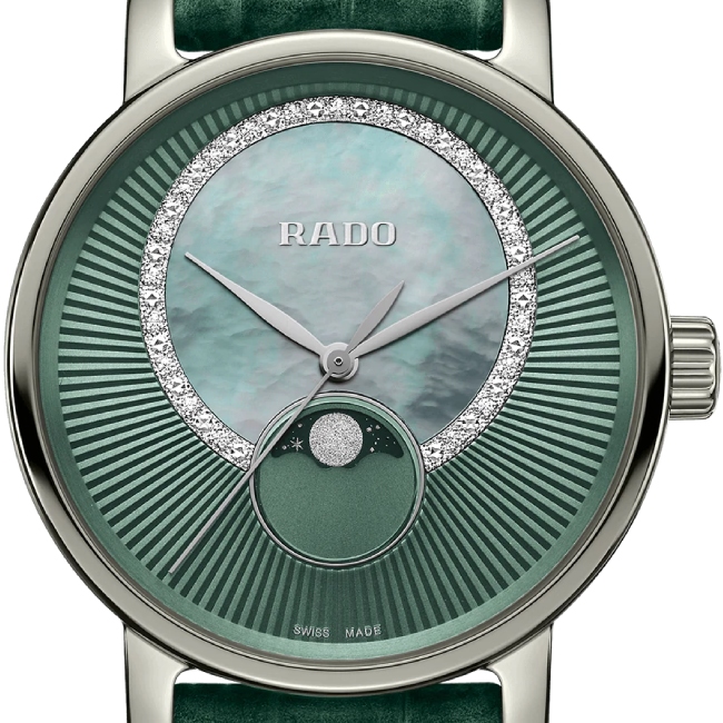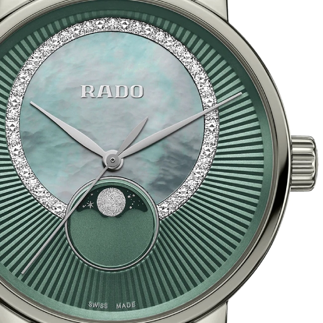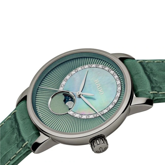 Anhand der Kombination von Hightech-Materialien, die Rado mit seiner jahrelangen Erfahrung entwickelt hat, und glänzenden Brillantschliff-Diamanten hat Rado mit beeindruckender Wirkung zwei der härtesten, in der Welt der Uhrmacherei verfügbaren Materialien vereint. Zifferblätter aus Perlmutt und Lederarmbänder sorgen zudem für ein Gefühl von Weichheit und Weiblichkeit.