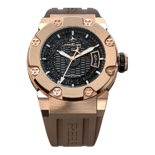 Drawing on the strength of its bold and original character, the Predator S is a remarkable part of the collection, with a smaller-sized 42 mm case. Revamped to include three hands and date display, its contemporary honeycomb design leans towards a more delicate…and even feminine feel. Fashioned much like a race car with its date display aperture, evoking a fuel tank flap, this model features the characteristics of the automotive world, like the multi-layered dial with its honeycomb base and the bezel attached by eight distinctive logo-branded screws. Like its big sister, the Predator S three Hands is powered by an automatic Swiss-made engine, as robust as it is precise. The case relies upon a diversity of technical materials: ceramic, carbon, steel, and titanium. This precision timepiece is superbly decorated (sandblasted Black Gold, polished steel, logo-engraved bridge and more…). A sapphire crystal provides an unobstructed view of its automatic Swiss-made movement from the back.