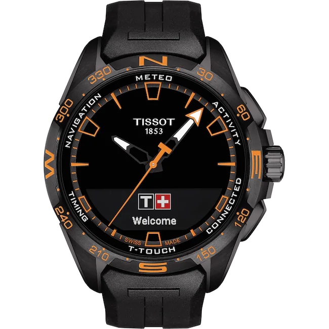 Tissot T-Touch Connect Solar Smartwatch Titan Schwarz – Orange mit schwarzem Kautschukarmband