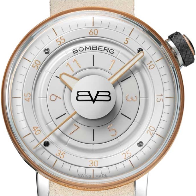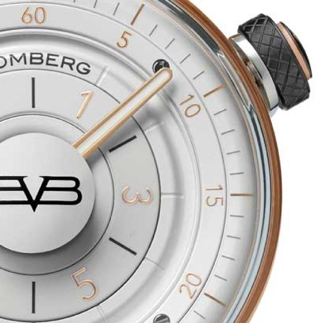 Eine neue Serie der Bomberg-Zeitmesser BB-01: drei Zeiger, Quarzuhrwerk, Stahlgehäuse und freche Krone am Aussengehäuse auf zwei Uhr. Dieses Modell ist hauptsächlich weiss mit goldfarbenen Akzenten und kommt mit einem wunderschönen Armband aus einer Metalllegierung im Mailänder Stil. Der Stundenzeiger dreht sich in einem kleinen Ziffernkreis, während der Minutenzeiger auf einen äusseren Kreis mit den angegebenen Zahlen verweist – und der Sekundenzeiger dreht sich um den gesamten Umfang. Um diese stylische Armbanduhr in eine Taschenuhr und einen echten Hingucker zu verwandeln, kaufen Sie noch die Kette dazu, die direkt am Gehäuse befestigt werden kann (nicht inbegriffen). Uhrwerk, Design und Montage, alles made in Switzerland.