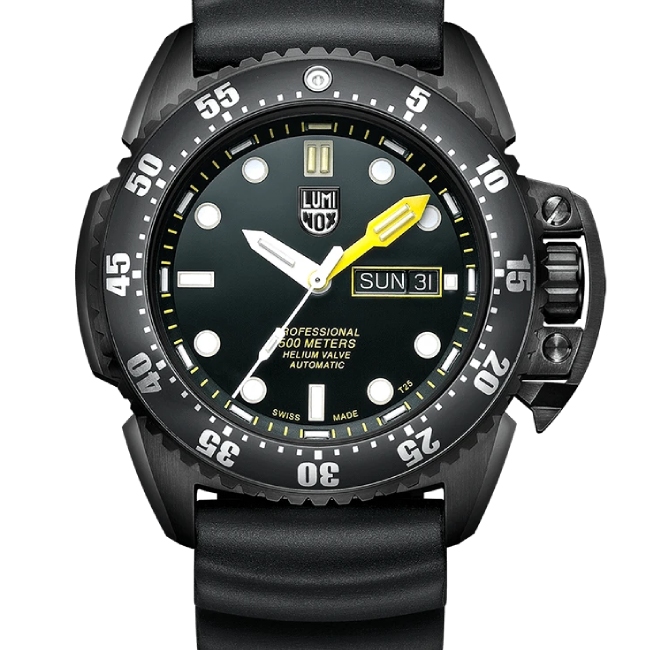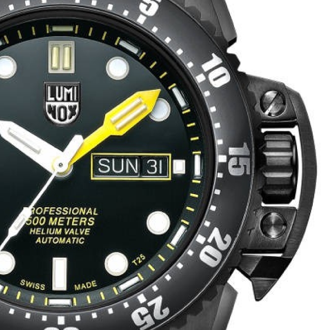 Die neue Luminox Deep Dive wartet mit einigen technischen Überraschungen auf. Diese speziell für professionelle Taucher konzipierte Uhr erfüllt die extrem hoch angesetzten Normen von ISO 6425 für Tauchuhren. Sie übertrifft die dort verlangten Minimumstandards bei weitem und überzeugt mit ihrer überragenden Sichtbarkeit in der Dunkelheit, dem automatischen Helium-Ablasssystem sowie dem Kronenschutz, bzw. der Lünettensicherung. Das Edelstahlgehäuse und die erwähnten technischen Feinheiten machen die Luminox Deep Dive zu einem besonderen Blickfang an Ihrem Handgelenk.