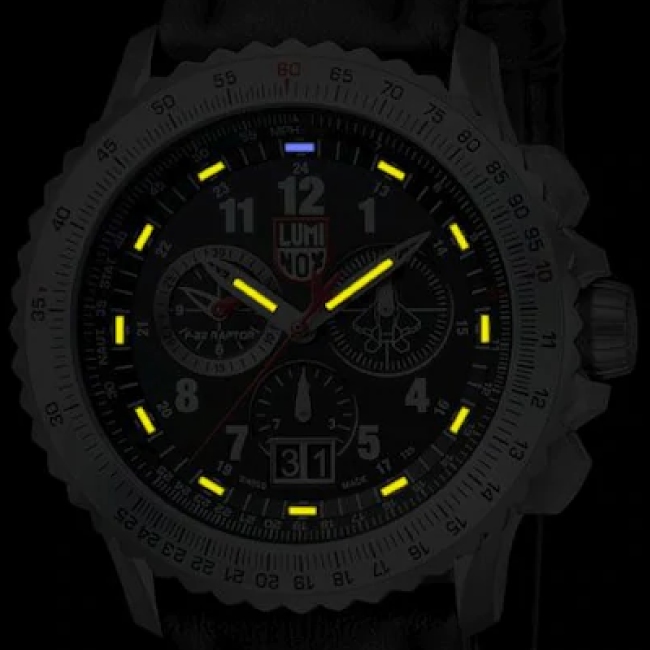 Die Luminox Herrenuhr F-22 Raptor™ 9240 Series. Sportliche, hervorragend verarbeitete Titanium Uhr mit Nachtsichteigenschaften, die speziell für die Piloten der F-22 Raptor™ entwickelt wurde. – Die Lockheed Martin F-22 Raptor ist ein Luftüberlegenheitsjäger der US-Flugzeugbauer Lockheed Martin und Boeing, der ausschliesslich von der U.S. Air Force als Nachfolger für die F-15A-D Eagle eingesetzt wird. Besondere Merkmale sind ihre Tarnkappeneigenschaften, die hochmoderne Avionik und ihre Fähigkeit, ohne Nachbrenner überschallschnell zu fliegen.