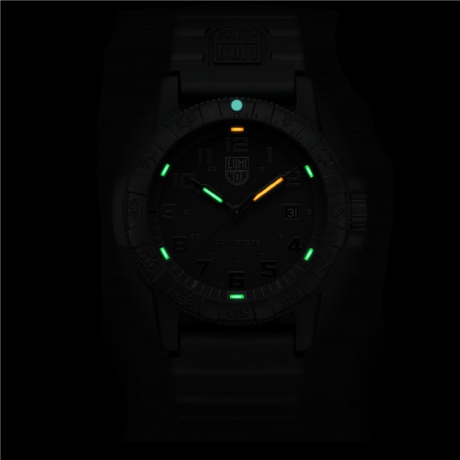 Die Sportliche, hervorragend verarbeitete Dreizeiger-Quartzuhr mit Nachtsichteigenschaften aus der neuen Sea Turtle-Serie, verfügt neben der Luminox-Technologie über Präzision und Langlebigkeit. Das Gehäuse, die in beide Richtung verstellbare Lünette und der verschraubte Gehäuseboden sind aus geformtem, kohlefaserverstärkten Hightech-Kunststoff gefertigt. Die Sea Turtle Serie besticht durch das tolle Design, welches mit der Form einer Schildkröte verglichen wird, die Wasserdichtigkeit bis 10 ATM (100m) und das verwendete Ronda Quarzwerk. Höchste Qualität, Leichtigkeit und Robustheit, das zeichnet diese Luminox aus.
