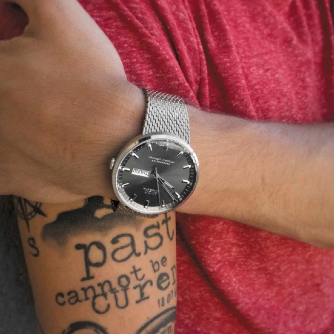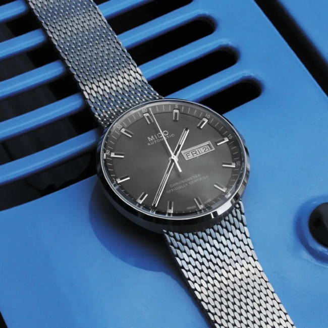 Das zarte, runde Gehäuse aus satiniertem Edelstahl verleiht der Commander-Kollektion eine einzigartige Form mit hohem Wiedererkennungswert – so wie die Silhouette des Eiffelturms. Wie Letzterer ist auch sie ein Symbol der ewigen Jugend, an dem die Zeit scheinbar spurlos vorbeizieht. Ihre außergewöhnliche Langlebigkeit ist ein klares Erfolgszeichen: Seit 1959 wird die Commander ununterbrochen durch Mido gefertigt. Sie hat fast sechs Jahrzehnte überdauert und konnte dabei ihre unverkennbare Identität bewahren, die ihr Erfolgsgeheimnis ist. So wie der Eiffelturm das Wahrzeichen von Paris ist, wurde die Commander ein Symbol für Schweizer Uhrmachertradition und Know-how.
