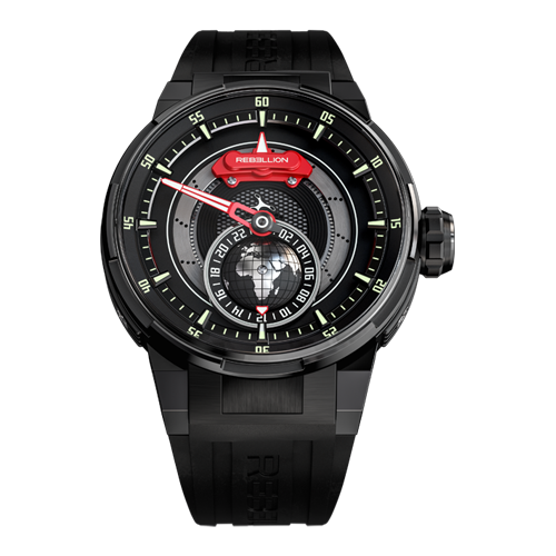 Description REBELLION conceived and developed the Predator 2.0 in the same spirit as the rest of its collection: With authenticity, refined design and uncompromising quality and performance. The Predator 2.0 GMT is the ultimate technical and aesthetic fusion between racing cars and fine watches. The unique display is directly inspired from the brakes of racecars, which, like the engines, are an integral part of the vehicles’ performance, power, endurance, resistance and reliability! In fact, wearing the Predator 2.0 GMT is like pushing the brake pedal of a racing car. The dashboard features an astonishing hour hand made up of a disc with a red caliper. You can plan to drive your watch at any of the world’s great tracks, from Daytona to Le Mans, thanks to the large, round time zone indicator. The racing car aesthetics are rounded off by the uniquely shaped seconds’ hand. The self-winding movement provides a generous 42 hours of power reserve, a genuine tribute to endurance racing!