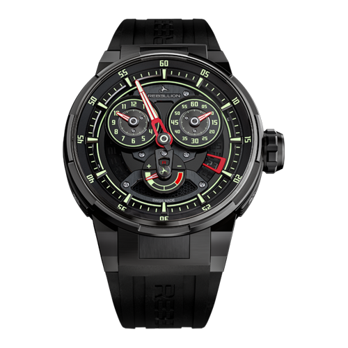 Description REBELLION conceived and developed the Predator 2.0 in the same spirit as the rest of its collection: With authenticity, refined design, uncompromising quality and performance. In the past, regulator-clocks were used as references by watchmakers to set the time, and in observatories. The Predator 2.0 Regulator Power Reserve displays its legacy with a design blending watchmaking history and racing car aesthetics. Wearing the Predator 2.0 Regulator Power Reserve is like climbing into a racing car: The “dashboard” displays two attractive counters for the hours and minutes and is completed by a uniquely shaped second hand. Check your fuel gauge at 6 o’clock and get into pole position! The 3D architecture reveals the date at 4 o’clock. The self-winding movement offers a generous 46 hours of power reserve, a genuine tribute to endurance racing. The exclusive case allows considerable space for personalization.