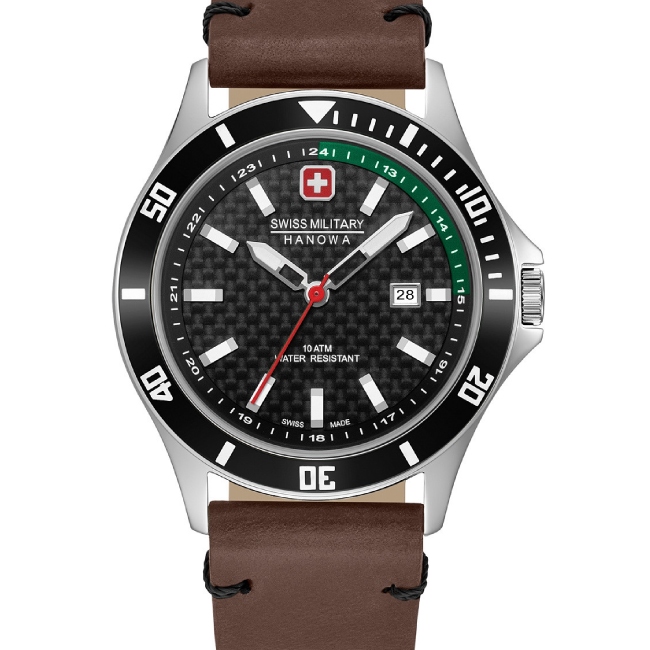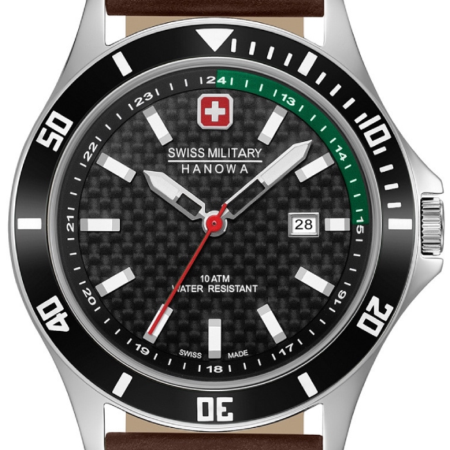 Die Flagship Racer von Swiss Military Hanowa überzeugt durch sein sportliches und unverkennbarem Design. Ein erstklassiges Schweizer Quarzwerk (Ronda 505) sorgt für eine präzise Zeitmessung. Ein hochwertiges Edelstahlgehäuse (Ø 42 mm) mit einem einzigartigen Zifferblatt-Design, beeindruckt durch seine unverkennbare Karbon-Struktur. Die farbige Lünette unterstreicht die Sportlichkeit der Flagship Racer.