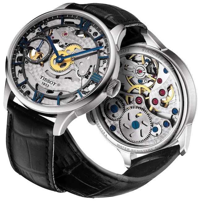 Die Marke Tissot legt mit der Tissot Chemin des Tourelles Squelette die innersten Geheimnisse ihrer tief verwurzelten Kompetenz in der Herstellung von Präzisionsuhren sprichwörtlich offen. Bei diesem Modell verbindet sich das Moderne mit dem exakten Handwerk und zeigt sich in dem von einem Rad inspirierten Design und dem speziell entwickelten Uhrwerk. Diese Kreation ist ein faszinierendes dreidimensionales Erlebnis, das so manches Auge in seinen Bann ziehen wird. Hinter fünf „Speichen“, die sich unter dem Uhrenglas in alle Richtungen erstrecken, arbeitet unermüdlich ein mechanisches skelettiertes Uhrwerk mit Handaufzug, das nichts verbirgt. Luxuriöse Verarbeitung und Designelemente vereinen Tradition mit modernem Styling – ideal für all jene, die Vergangenheit, Gegenwart und Zukunft zusammenbringen wollen. Bühne frei für stilvolle Auftritte!