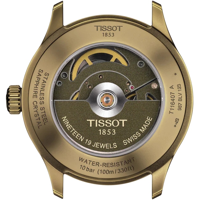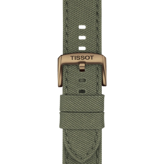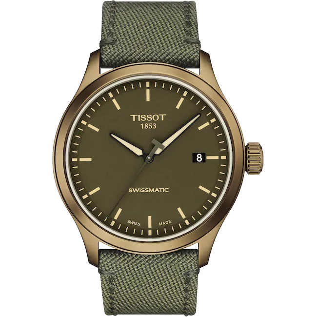 Der Tissot Gent XL Swissmatic ist eine neue Produktline innerhalb der Tissot Sport Kollektion. Die Herrenuhr mit Swiss-Made Automatikwerk besitzt ein 316-Edelstahl Gehäuse mit bronzefarbener PVD-Beschichtung. Das kratzfeste Saphirglas schützt das braune Zifferblatt mit Strich-Indizes und Zeiger welche eine Superluminova Beschichtung besitzen. Das hochwertige Leder-Textil Armband besitzt eine klassische Dornschliesse. Der Gehäuse-Durchmesser von 43 mm unterstreicht das sportliche Aussehen der Tissot Gent XL. Bis zu drei Tage Gangreserve stellt das Swiss Made Automatikwerk bereit, dessen Details der gläserne Sichtboden freigibt. Die perfekte Synthese zwischen klassischem Zeitmesser und moderner Alltagsuhr!