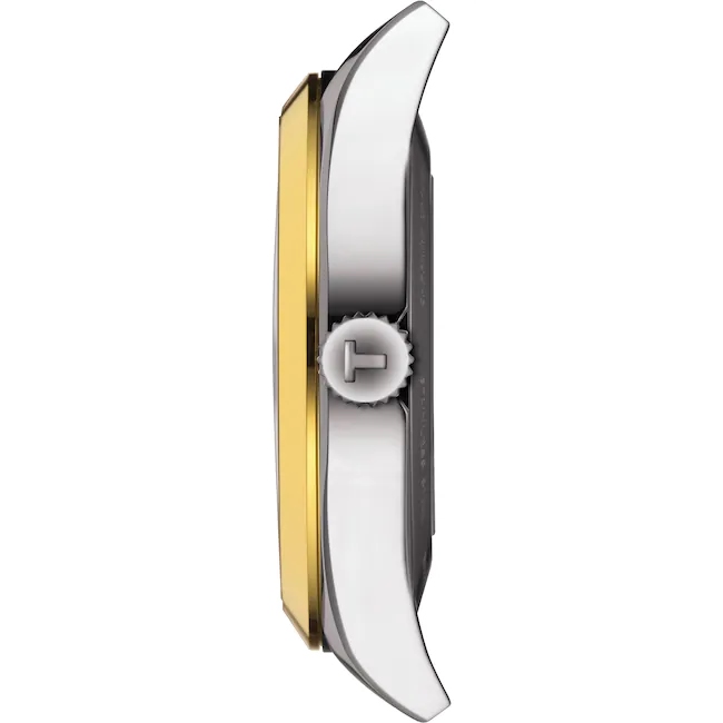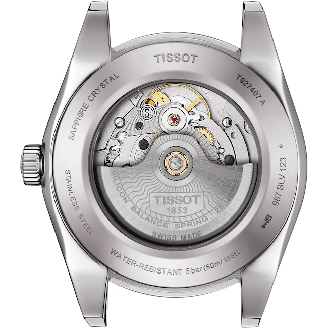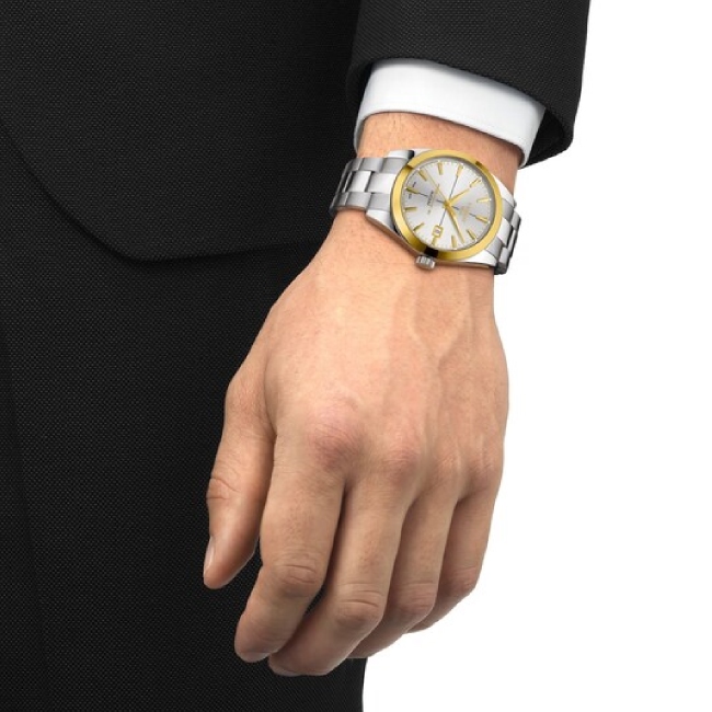 Zu einem Gentleman gehört auch ein stilvoller, klassischer und eleganter Zeitmesser. So wie die neue Tissot Gentleman Automatic, die ihre Klasse bereits im Namen trägt. Auf dem 40 Millimeter messenden 316L-Edelstahlgehäuse sitzend, verleiht die 18 Karat Gelbgoldlünette der Uhr eine edle Optik und bildet gemeinsam mit den gleichfarbigen Indexen und Zeigern einen gelungenen Kontrast zum Zifferblatt. Gentleman-like präsentiert sich auch das Innere der Uhr, zu bestaunen durch den gläsernen Sichtboden aus Mineralglas: Das Powermatic 80 Automatikwerk – hier in der Ausführung mit Siliziumspirale (ETA C07.811) – bildet das Herz dieses Zeitmessers und sorgt für bis zu 80 Stunden Gangreserve und konstante Präzision. Dieses Modell hat ein dunkelblaues Zifferblatt mit Indizes und Datumsanzeige sowie ein dunkelblaues Lederarmband mit Faltschliesse und Drückern.