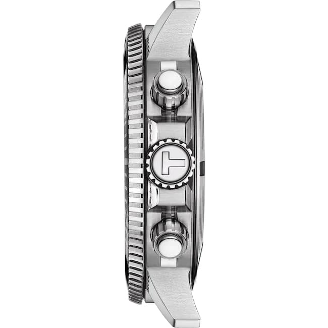 Die Tissot Seastar 1000 Quartz Uhr ist die perfekte Wahl für Taucher. Sie beeindruckt durch ihre Hochleistungsfähigkeit bis zu einem Druck von 30 bar (300 m / 1000 ft), lumineszierenden Zeigern und Indizes sowie der einseitig drehbaren, schwarzen Keramik-Taucherlünette. Mit dieser Uhr können Sie sich mutig in die Tiefe wagen, sie wird Sie nicht fallenlassen. Diese Uhr der Seastar 1000 Quartz Kollektion ist mit einem Swiss Made Quartzwerk, kratzfestem Saphirglas, einem 316L – Edelstahlgehäuse sowie verschraubter Krone und verschraubtem Gehäuseboden ausgestattet.