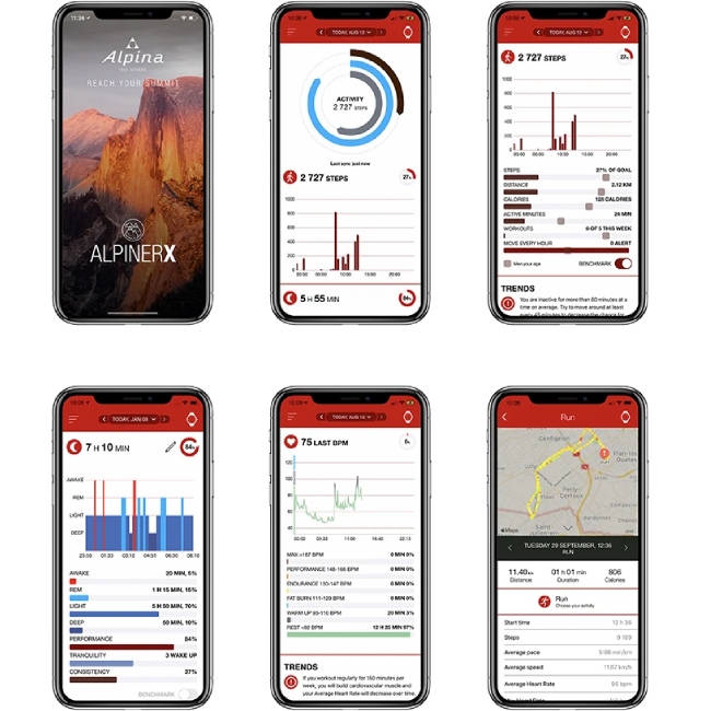Die AlpinerX ist die ultimative vernetzte Outdoor-Uhr. Mit ihren fünf Sensoren misst sie UV-Index, Temperatur, Höhe, Luftdruck und Himmelsrichtung. Als ideale Fusion aus klassischem Alpina Sportuhrendesign und moderner vernetzter Technologie bietet die Uhr eine Fülle von Funktionen und ist zugleich ein Musterbeispiel attraktiver Uhrmacherkunst. Die Funktionen der AlpinerX sind in die drei Kategorien Umwelt, Körper und Zeit & Benachrichtigung unterteilt.