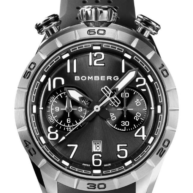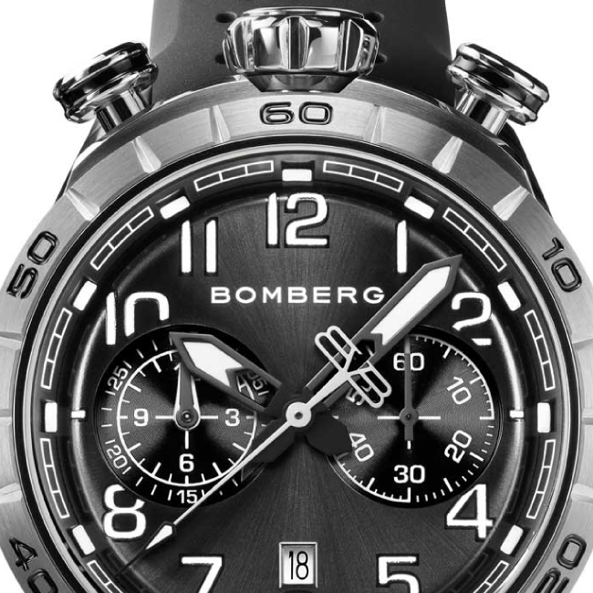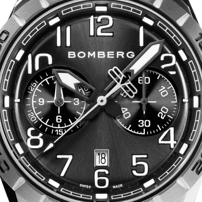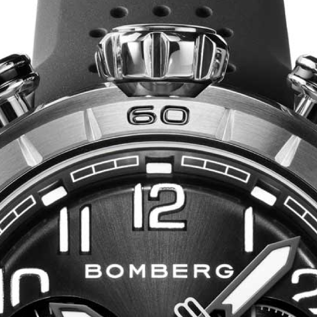 Der Chronograph BB-68 hebt sich durch die Position der Krone und der Drücker bei 12 Uhr ab. Dieses unverkennbare, „Bullhead“ genannte Designmerkmal von Bomberg verweist auf den stolzen, männlichen Ausdruck dieser Uhr. Es sorgt aber nicht nur für einen hohen Wiedererkennungseffekt der Marke, sondern bietet vor allem auch einen unvergleichlichen Tragekomfort am Handgelenk.