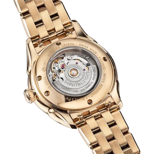 In der Schweiz hergestellt, gibt die Hamilton Jazzmaster Lady Auto ihrer Trägerin alle Mittel an die Hand, um ihre Zeit effizient und elegant einzuteilen. Innen wie aussen besticht die Uhr durch eine sehr hochwertige Verarbeitung. Ihr Herzstück, ein präzises, zuverlässiges Automatikwerk, ist durch den Gehäuseboden sichtbar und belegt, dass Technik und Weiblichkeit im 21. Jahrhundert perfekt harmonieren können. Ausgestattet mit einem zusätzlichen weissen Lederband.