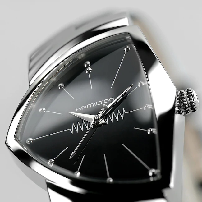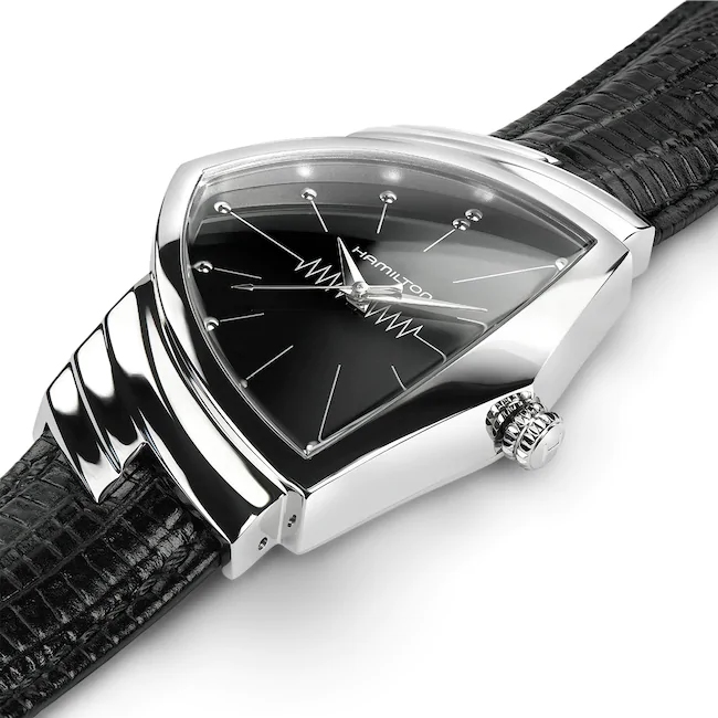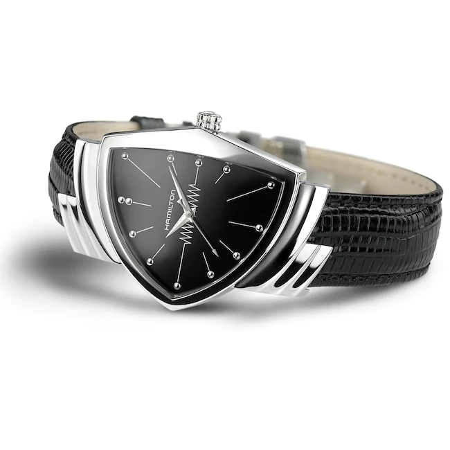 Die Hamilton Ventura hat in jedem Men In Black-Film eine Starrolle gespielt – als Schlüssel zu den Figuren, wie auch der schwarze Anzug, die Sonnenbrillen und der Neuralisator. Die Ventura ist eine unserer beliebtesten Uhren und seit ihrer ursprünglichen Lancierung im Jahr 1957 Kult.