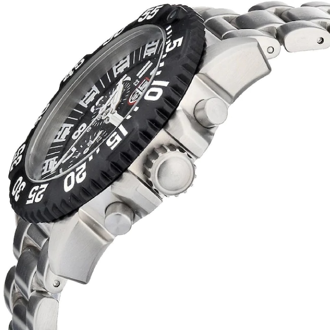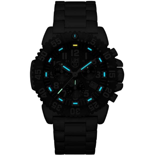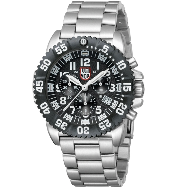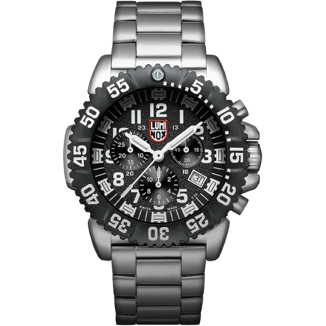 Die Luminox Herrenuhr Navy Seal Steel Colormark Chronograph 3182. Sportliche, hervorragend verarbeitete Edelstahl Uhr mit Nachtsichteigenschaften, die speziell für die US Armee, US Air Force und die Navy Seal entwickelt wurde. Das stromunabhängige Beleuchtungssystem (LLT), entwicklt von der Schweizer Firma mb-microtec, stellt bei absoluter Dunkelheit, wie auch in der Dämmerung das Ablesen der Zeit sicher. Auf diese Uhr können Sie sich verlassen. Die Luminox Steel Colormark Chronograph besticht durch das tolle Design, die Wasserdichtigkeit bis 20 ATM (200m) und das verwendete Ronda Quarz-Chronographenwerk. Das ist echte Swiss Made Qualität für maximale Anforderungen an Robustheit und hervorragende Ablesbarkeit.