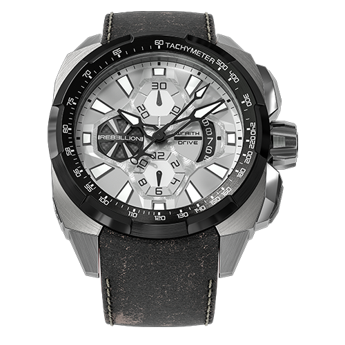 Description An intensely impressive motorsport-inspired chronograph, the Wraith Drive unashamedly asserts it ambitions for victory. Its very DNA is embodied within every detail. Member of the Rebellion racing team, the Wraith Drive is endowed with exemplary endurance: 48 hours of autonomy. Like every perfected driver, the Wraith Drive is able to adapt. Natural steel or black DLC finish chassis, six material/colour combinations and two strap options available in ultra-sports NyTech or elegant calf leather.