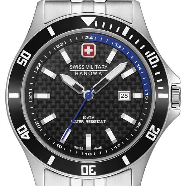 Die Flagship Racer von Swiss Military Hanowa überzeugt durch sein sportliches und unverkennbarem Design. Ein erstklassiges Schweizer Quarzwerk (Ronda 505) sorgt für eine präzise Zeitmessung. Ein hochwertiges Edelstahlgehäuse (Ø 42 mm) mit einem einzigartigen Zifferblatt-Design, beeindruckt durch seine unverkennbare Karbon-Struktur. Die farbige Lünette unterstreicht die Sportlichkeit der Flagship Racer.