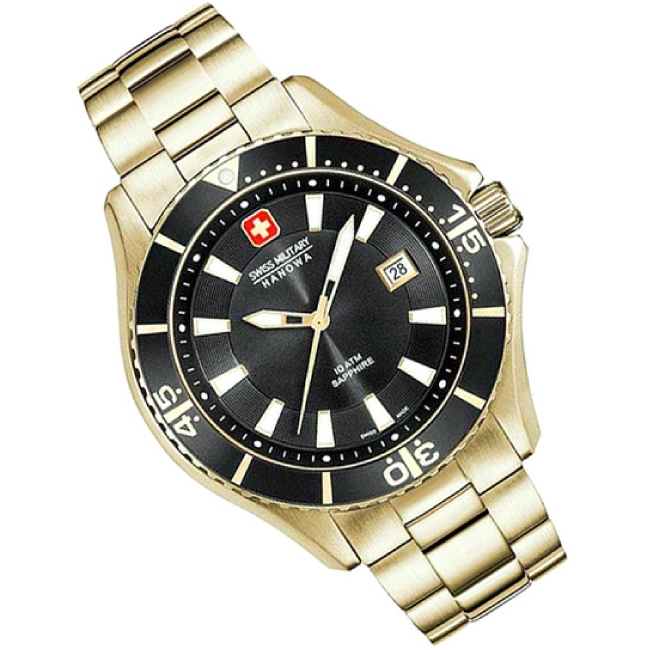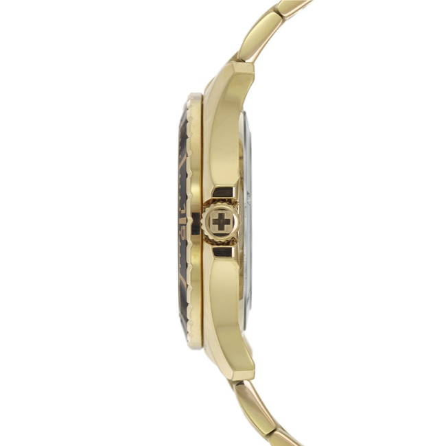 Die Nautila aus hochwertigem Edelstahl überzeugt durch sein klares sportliches Design, welches im Einklang mit dem massiven Gliederarmband steht. Das edle, goldene Zifferblatt mit Strichindexen und Datumsanzeige bei 3 Uhr wird durch ein entspiegeltes kratzfestes Saphirglas geschützt. Die einseitig drehbare Lünette sowie die Wasserdichtigkeit bis zu 10 ATM erinnern uns daran, dass es sich bei der Nautila um eine vielseitig einsetzbare Schweizer Uhr handelt, welche Funktionalität und Design auf perfekte Weise vereint.
