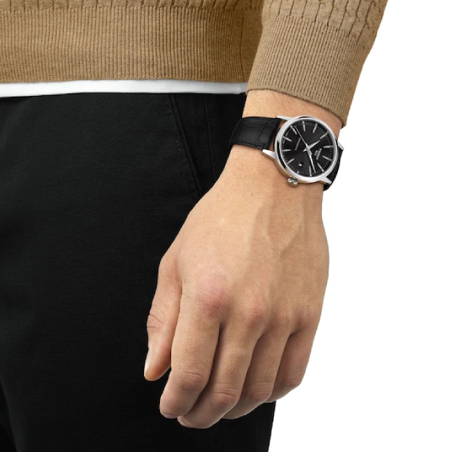 Die beliebte Tissot Classic Dream Kollektion wurde überarbeitet und mit einem neuen Design ausgestattet. An dem ursprünglichen Ziel als klassische und elegante Uhr für jeden Tag zu dienen hat sich allerdings nichts geändert. Der zeitlose Stil macht die Uhr zu einem immerwährenden Klassiker. Die Classic Dream Swissmatic verfügt über ein Swiss-Made Automatikwerk mit einer Gangreserve von bis zu 3 Tagen und ist mit einer Nivachron-Spiralfeder versehen, welche für eine herausragende Magnetfeldsicherheit bekannt ist. Das Zifferblatt mit Datumsanzeige und gesplitteten Indizes geben der Uhr den besonderen Schliff. Dieses Modell verfügt über ein 316L-Edelstahlgehäuse und ein schwarzes Zifferblatt, welches von dem entspiegelten, kratzfestem Saphirglas geschützt wird.