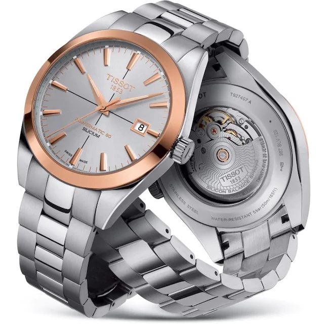 Zu einem Gentleman gehört auch ein stilvoller, klassischer und eleganter Zeitmesser. So wie die neue Tissot Gentleman Automatic, die ihre Klasse bereits im Namen trägt. Auf dem 40 Millimeter messenden 316L-Edelstahlgehäuse sitzend, verleiht die 18 Karat Gelbgoldlünette der Uhr eine edle Optik und bildet gemeinsam mit den gleichfarbigen Indexen und Zeigern einen gelungenen Kontrast zum Zifferblatt. Gentleman-like präsentiert sich auch das Innere der Uhr, zu bestaunen durch den gläsernen Sichtboden aus Mineralglas: Das Powermatic 80 Automatikwerk – hier in der Ausführung mit Siliziumspirale (ETA C07.811) – bildet das Herz dieses Zeitmessers und sorgt für bis zu 80 Stunden Gangreserve und konstante Präzision. Dieses Modell hat ein dunkelblaues Zifferblatt mit Indizes und Datumsanzeige sowie ein dunkelblaues Lederarmband mit Faltschliesse und Drückern.