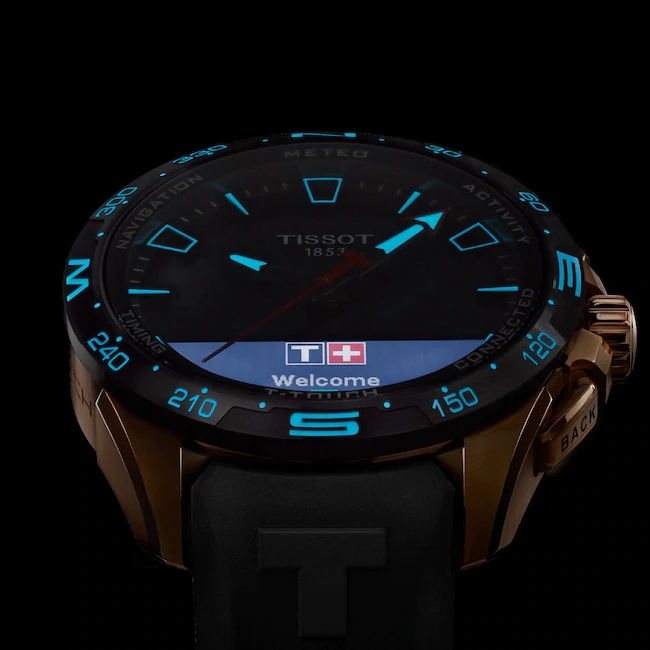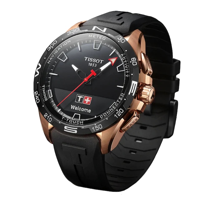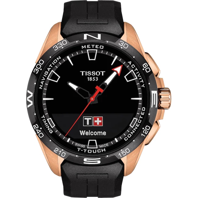 Tissot T-Touch Connect Solar Smartwatch Titan PVD Rosé mit schwarzem Kautschukarmband